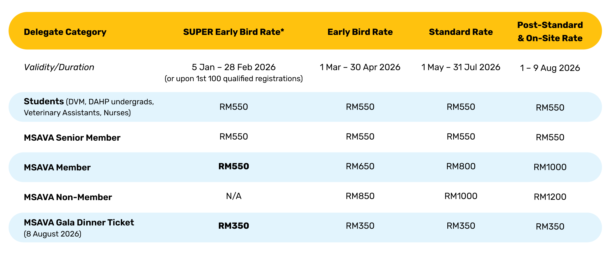 All pending arrears and current year (2026) subscription must be FULLY PAID to MSAVA Treasury to enjoy MSAVA member rates. Verify your membership status via email at:
